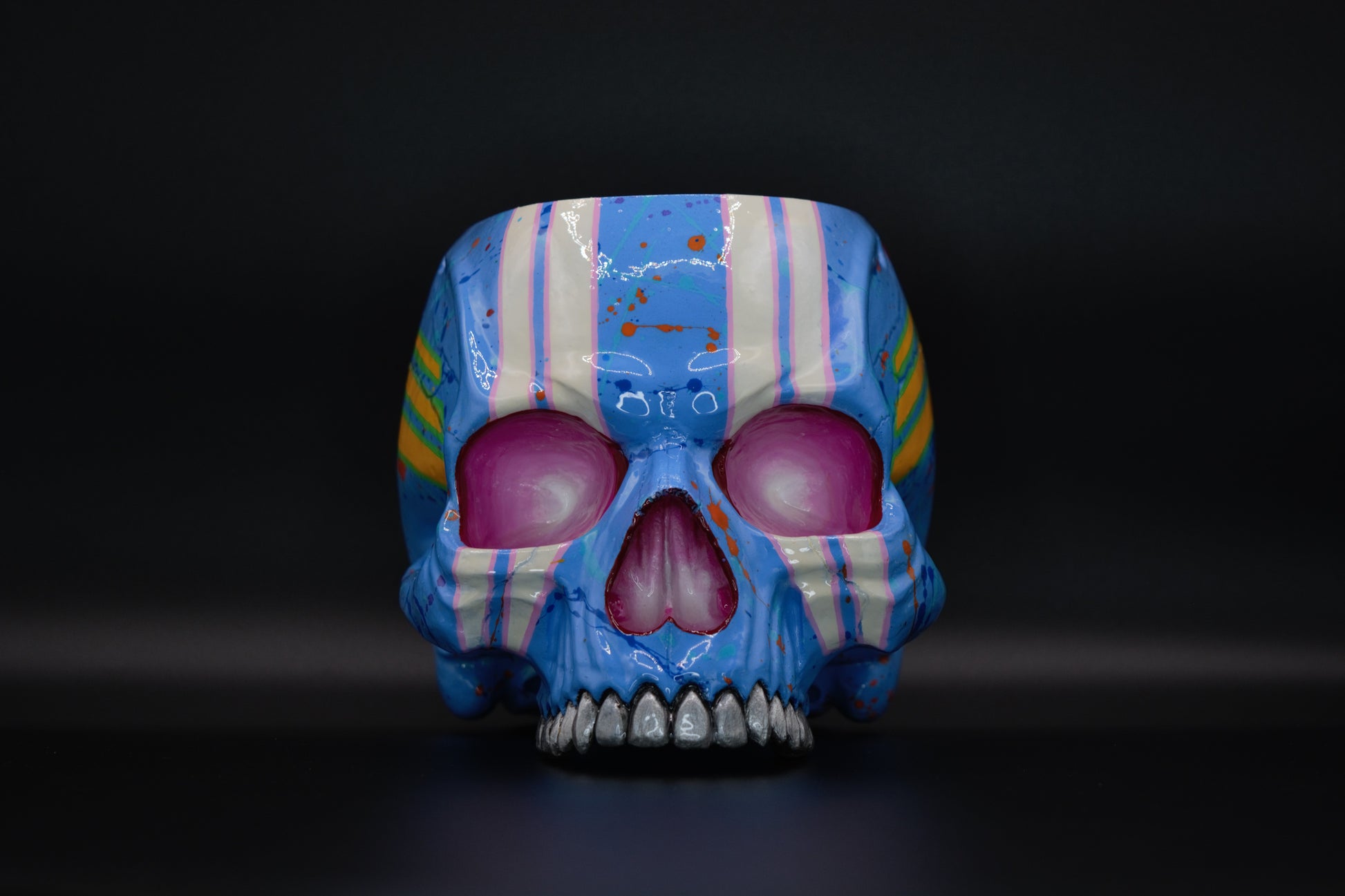 à partir d'une résine de haute qualité. Les lignes incisives du crâne, couplées à des couleurs vives, mettent en valeur l'esthétique percutant de cette création. Son aspect street-art ajoutera une touche moderne et énergisante à votre intérieur.