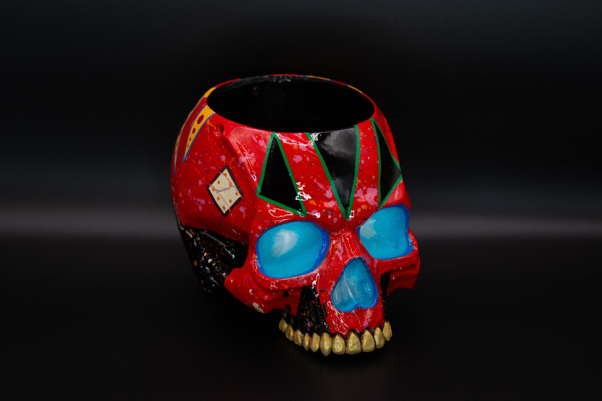 à partir d'une résine de haute qualité. Les lignes incisives du crâne, couplées à des couleurs vives, mettent en valeur l'esthétique percutant de cette création. Son aspect street-art ajoutera une touche moderne et énergisante à votre intérieur.