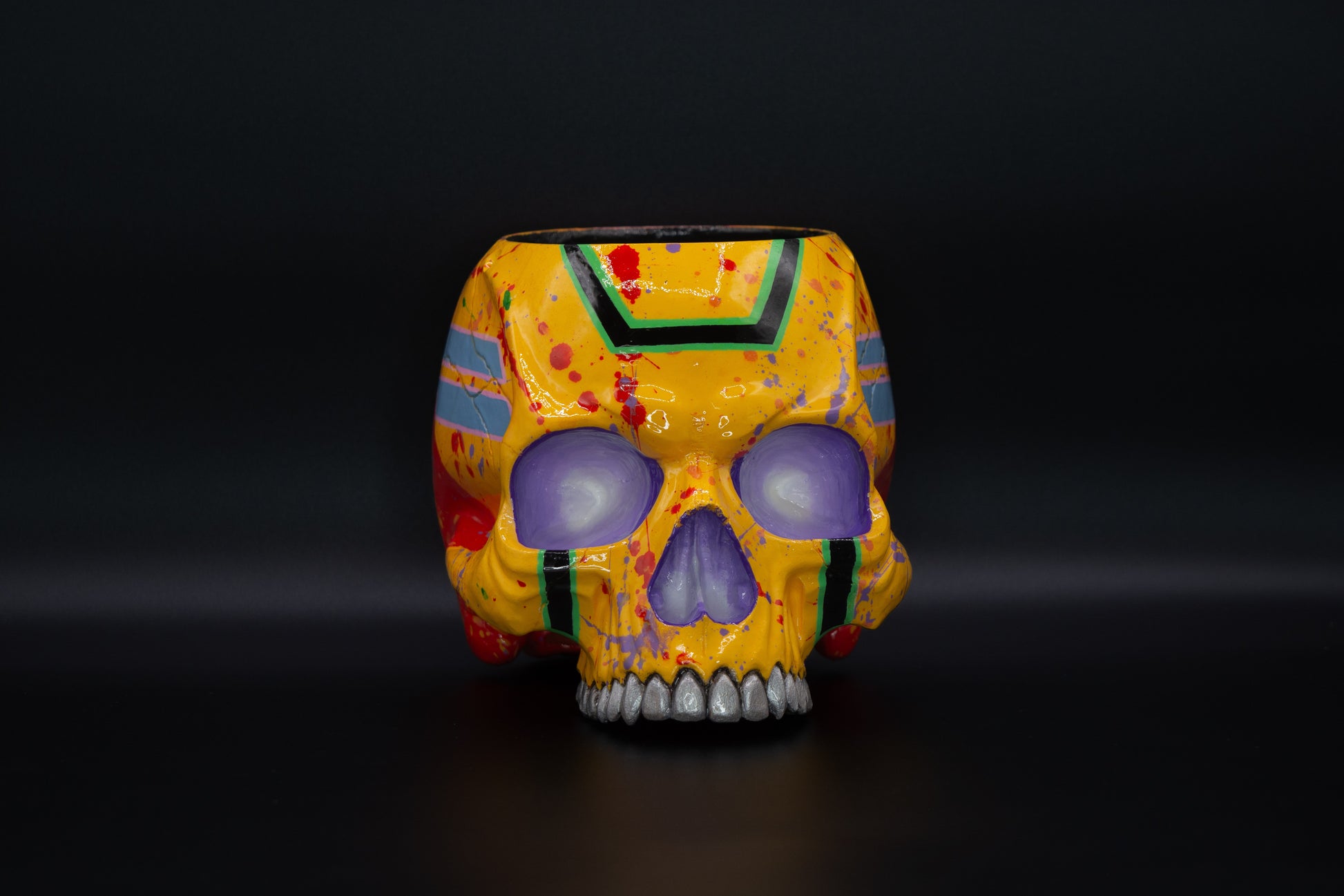 à partir d'une résine de haute qualité. Les lignes incisives du crâne, couplées à des couleurs vives, mettent en valeur l'esthétique percutant de cette création. Son aspect street-art ajoutera une touche moderne et énergisante à votre intérieur.