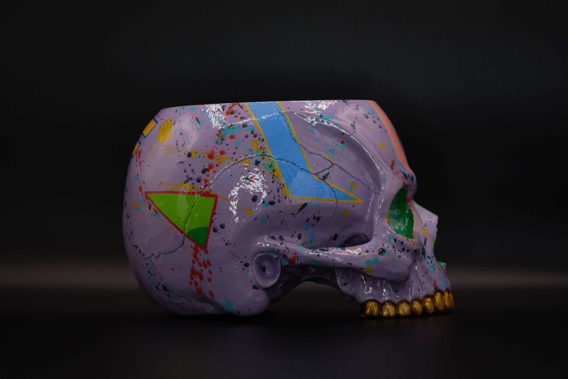 à partir d'une résine de haute qualité. Les lignes incisives du crâne, couplées à des couleurs vives, mettent en valeur l'esthétique percutant de cette création. Son aspect street-art ajoutera une touche moderne et énergisante à votre intérieur.